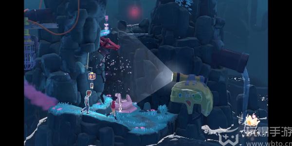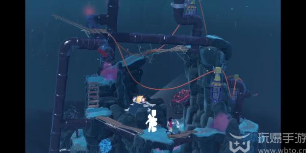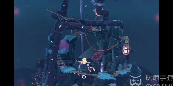 首先我们让拿着灯笼的角色往下走,另一个往上走,向前走就可以将光线收集到灯笼里。
