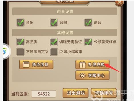 3.在系统设置中,找到右下角的礼包兑换,点击礼包兑换进入下一个界面。