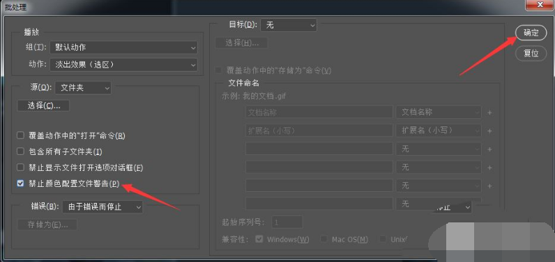 5. 选中“禁用颜色配置文件警告”选项后,单击“确定”。