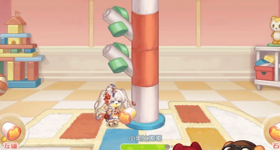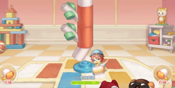 2、奥比需要挥舞玩具锤,击打积木柱子即可获得积分,恢复生命值即可获得积分。如果达到目标值,则视为胜利;