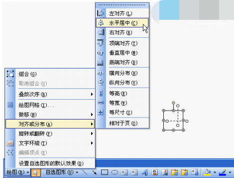 9、用鼠标框选刚刚绘制的图形,单击绘图工具栏中的“对齐”或“分布”工具,分别单击“水平居中”和“垂直居中”。