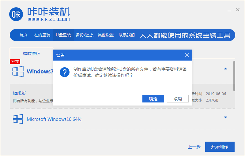 1、在电脑上下载并安装卡卡安装软件后,将U盘插入电脑,点击U盘重新安装系统。