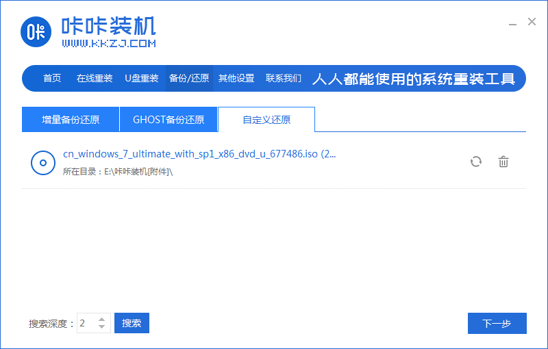 1、首先下载deepin win7系统镜像,打开卡卡卡安装工具,点击备份恢复系统。