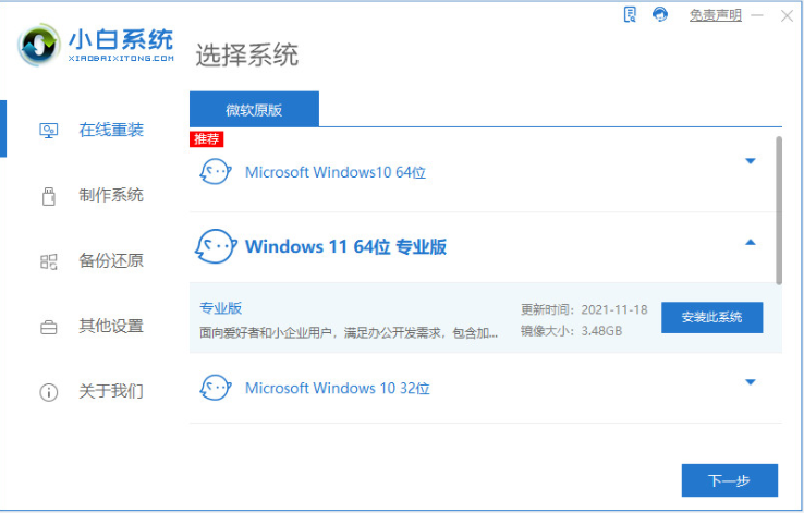 1、下载安装小白一键重装系统工具并打开。在在线重装一栏选择win11系统,点击安装该系统。
