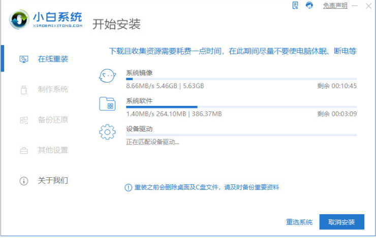 2、耐心等待软件自行下载镜像然后重启即可进入pe系统;