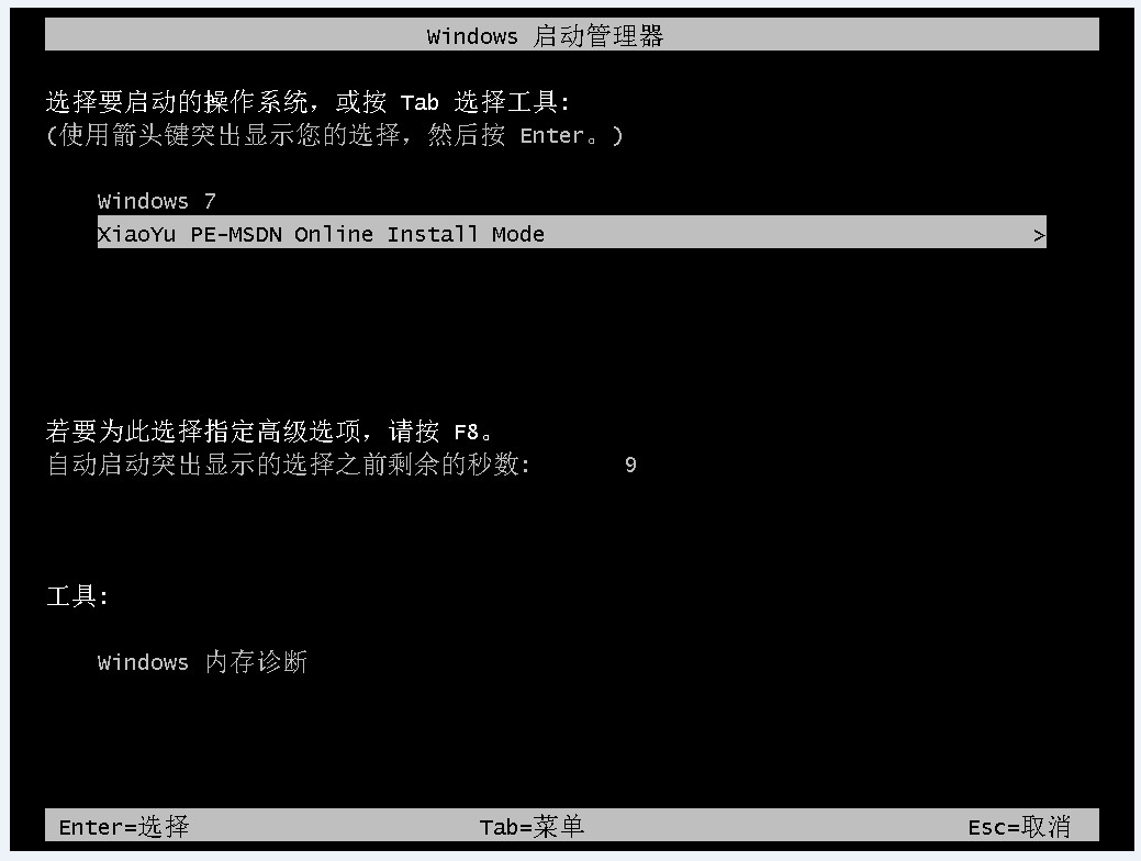4.重启后进入启动页面,选择第二项进入pe系统。