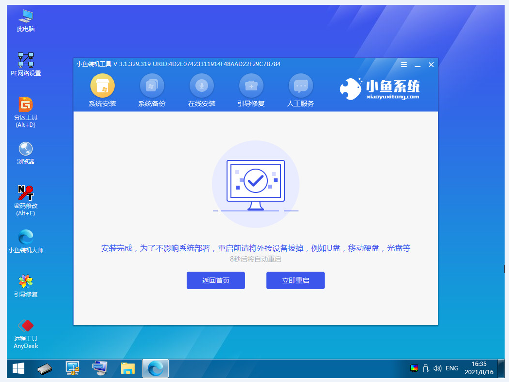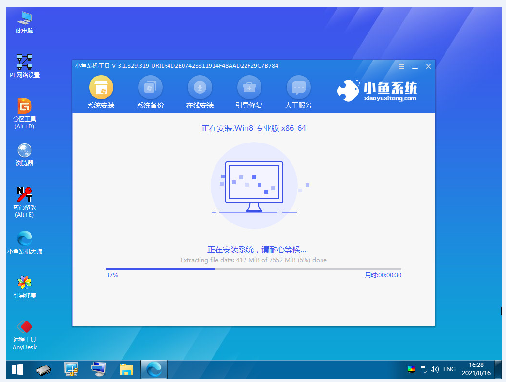 5、进入pe系统后,小鱼系统会自动安装系统,请耐心等待。