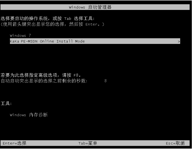3、然后软件会自动选择kaka-pe系统进入。