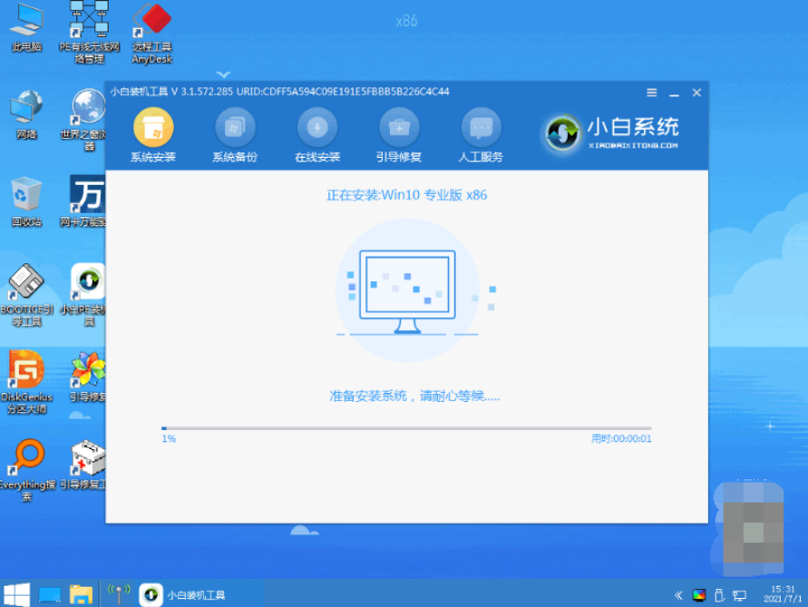 6、进入pe系统后,小白安装工具会自动安装win10。