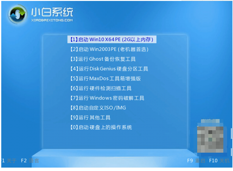 5、选择启动win10x64PE(2G内存以上),按返回键进入电脑。