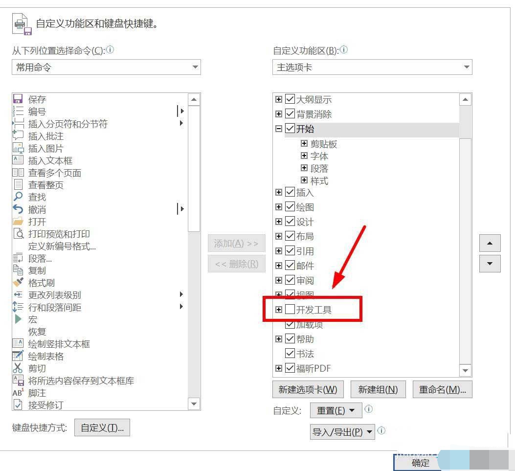 如何调整Word中的开发工具,打开word文档,可以看到菜单栏中没有“开发工具”菜单,如果没有,点击“文件”,点击“更多” ——“选项”,点击“自定义功能区”,找到“开发者工具”,在开发者工具前面打勾,然后点击“确定”。下面小编为大家带来Word没有开发者工具问题的解决方案。