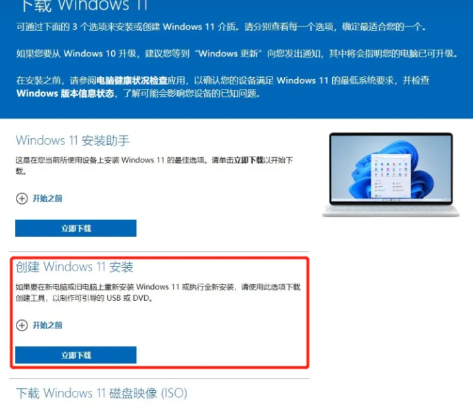 2、微软官网提供了三种下载方式。这里展示的是第二种方法(下图标注),比较适合新手。相同版本的系统安装后会自动激活。