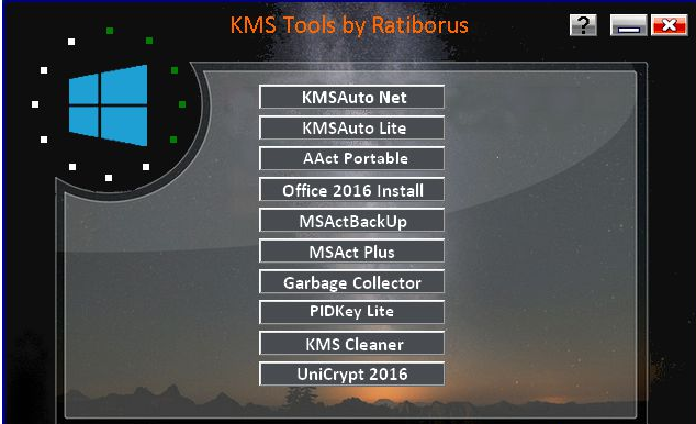 双击打开KMS工具,主界面列出了各种工具,前三个是KMS激活工具,点击第一个