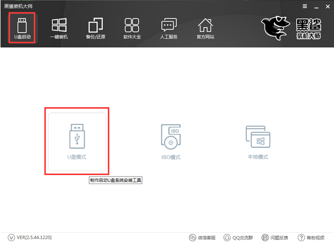 第一步:插入U盘,然后打开安装大师,在“U盘启动”选项下,点击进入“U盘模式”。