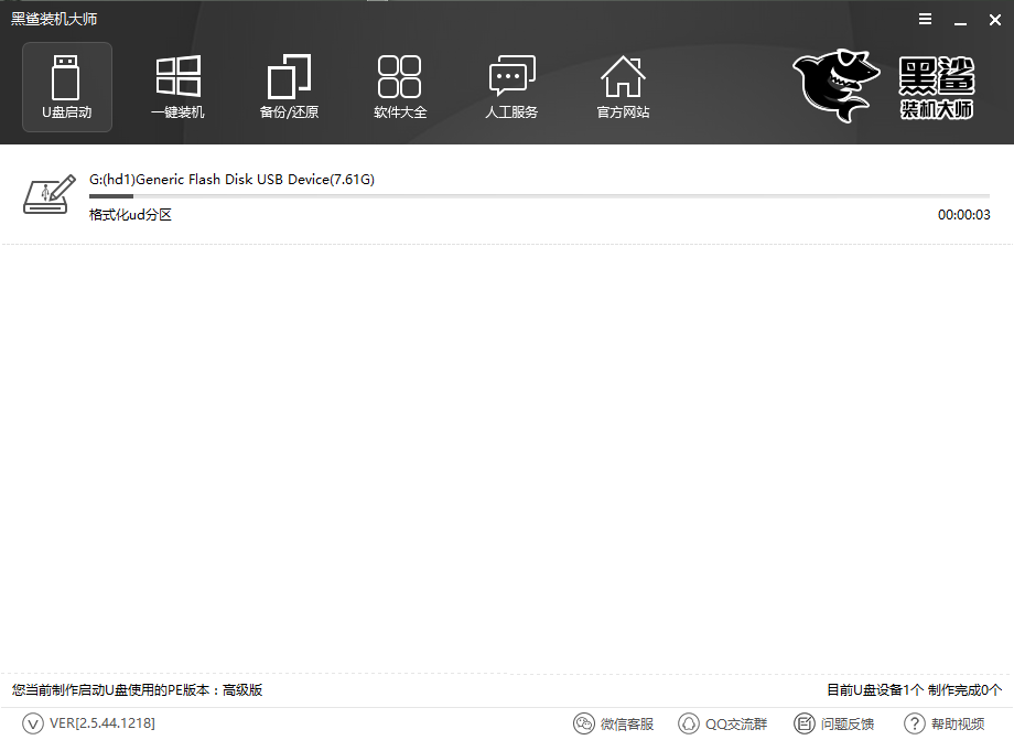 如果U盘创建成功,会显示“创建成功G:(hd1)”。如果失败,会显示“Creation failed G(hd1)”。如果U盘创建失败,只需格式化U盘,然后重新创建即可。