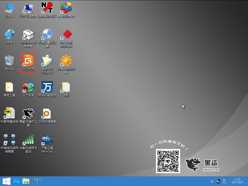 新买的SSD没有分区,所以必须分区。进入PE系统后,在PE系统桌面上打开Partition Master。