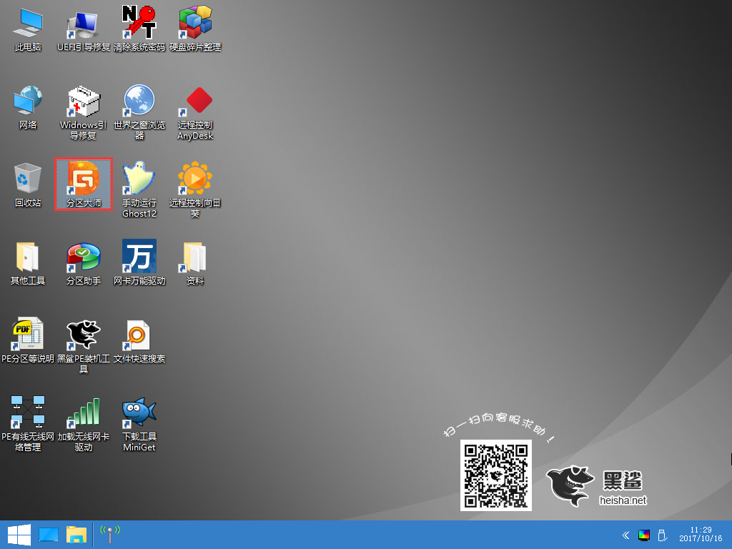 2、进入PE系统后,打开桌面上的“分区大师”。