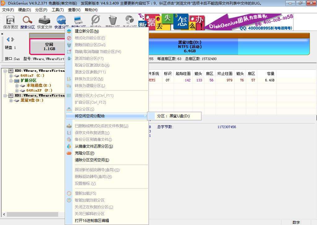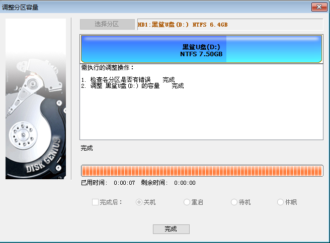 5、将空闲区域分配给U盘后,U盘可用容量增加,合并完成。