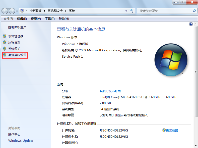 4. 在弹出的窗口中,点击“高级系统设置”。