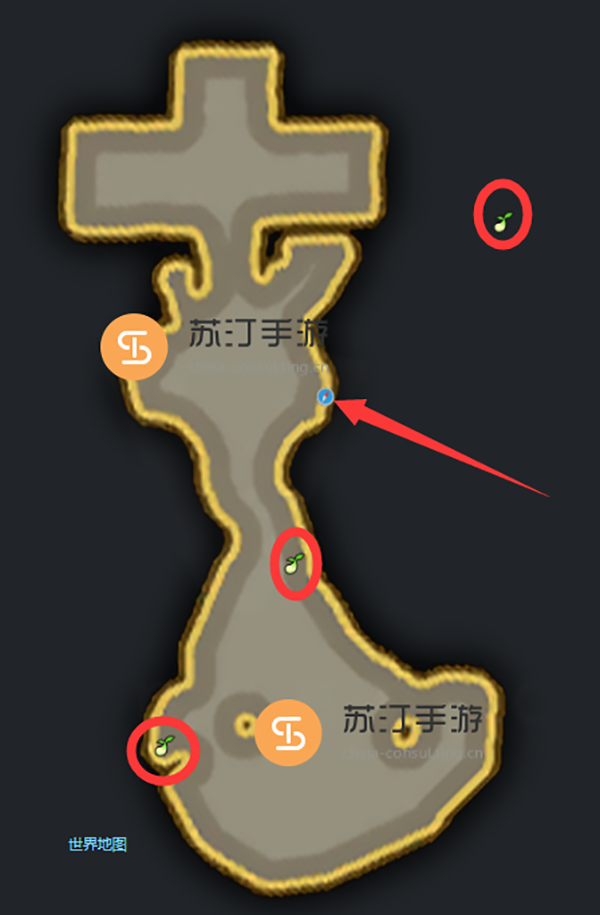 命运方舟扭曲次元岛:3 个Mokoko 种子。地图右上角有一个Mokoko 种子。红色箭头位置就是隐藏通道的入口。另外两个Mokoko 地点也标记在地图上。玩家可以根据对应的位置寻找Mokoko种子,如图: