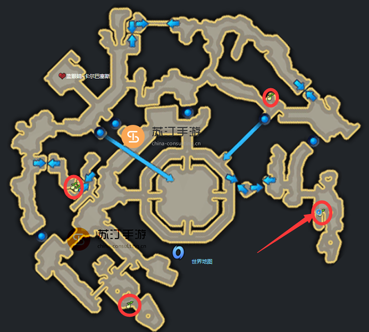 许普诺斯之眼、命运方舟:2 个Mokoko 种子。红色箭头位置有一个隐藏入口,mococo种子就是隐藏入口位置。剩下的4个mococo种子位置已经标注出来了,具体位置如图: