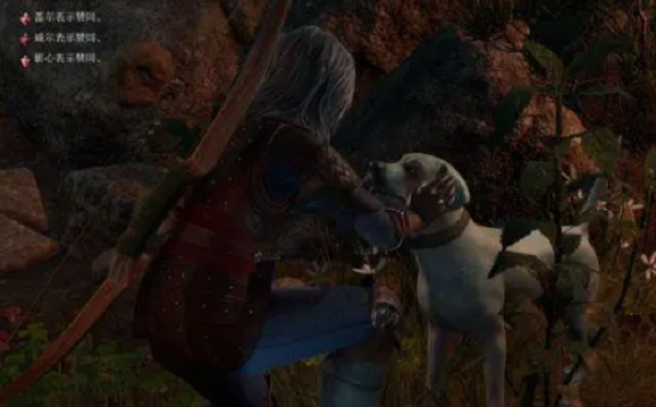 继续抚摸营地中的狗并与狗进行一些互动。这时候,有女生或者高手会认同你的行为,你就可以获得好感度。