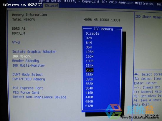 独立显卡的电脑内存也可能出现内存被占用的情况,可以把IGD Memory设定为Disabled