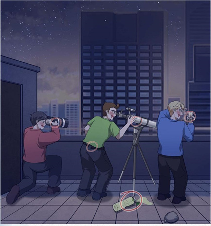 1、首先找到下图中标记的地方:垃圾、相机、裤子、望远镜、手机。