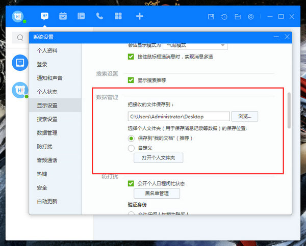 如何调整百度Hi接收文件的存储位置?如何调整百度Hi接收文件的存储位置?最近,很多朋友在使用百度Hi时需要调整接收文件的存储位置,却不知道如何操作。首先点击右上角的设置选项,然后点击左侧的显示设置,最后点击数据管理列表中的浏览进行修改。接下来本站就带大家详细了解一下如何调整百度Hi接收文件的保存位置。