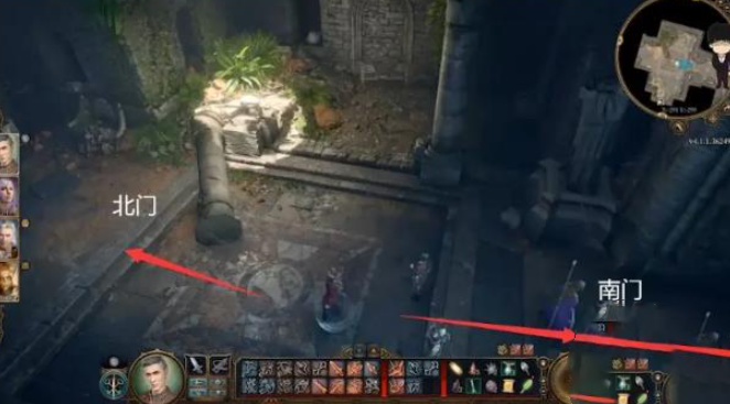 教堂内石棺的位置需要先打开机关门。解决掉守卫后,返回南边阵地。西门无法通过撬锁打开,机构位于南门内。南门一直开到底,可以检测到人形石像后面的开关位置,用控制杆打开西门