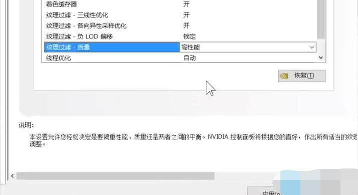 9. 纹理过滤—将质量设置为“高性能”,然后单击“应用”。