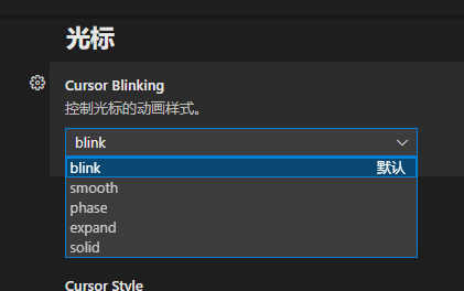 4. 然后找到右侧的“控制光标动画样式”,单击选项框的下拉按钮,并在给定列表中选择合适的选项。