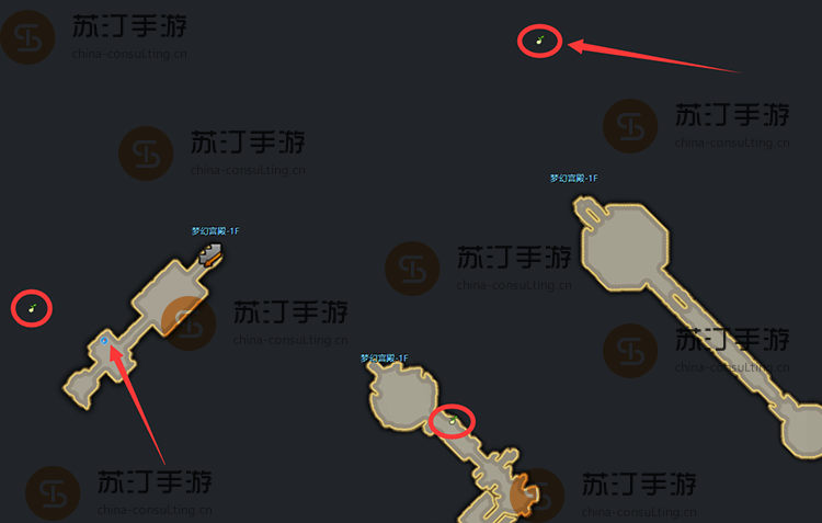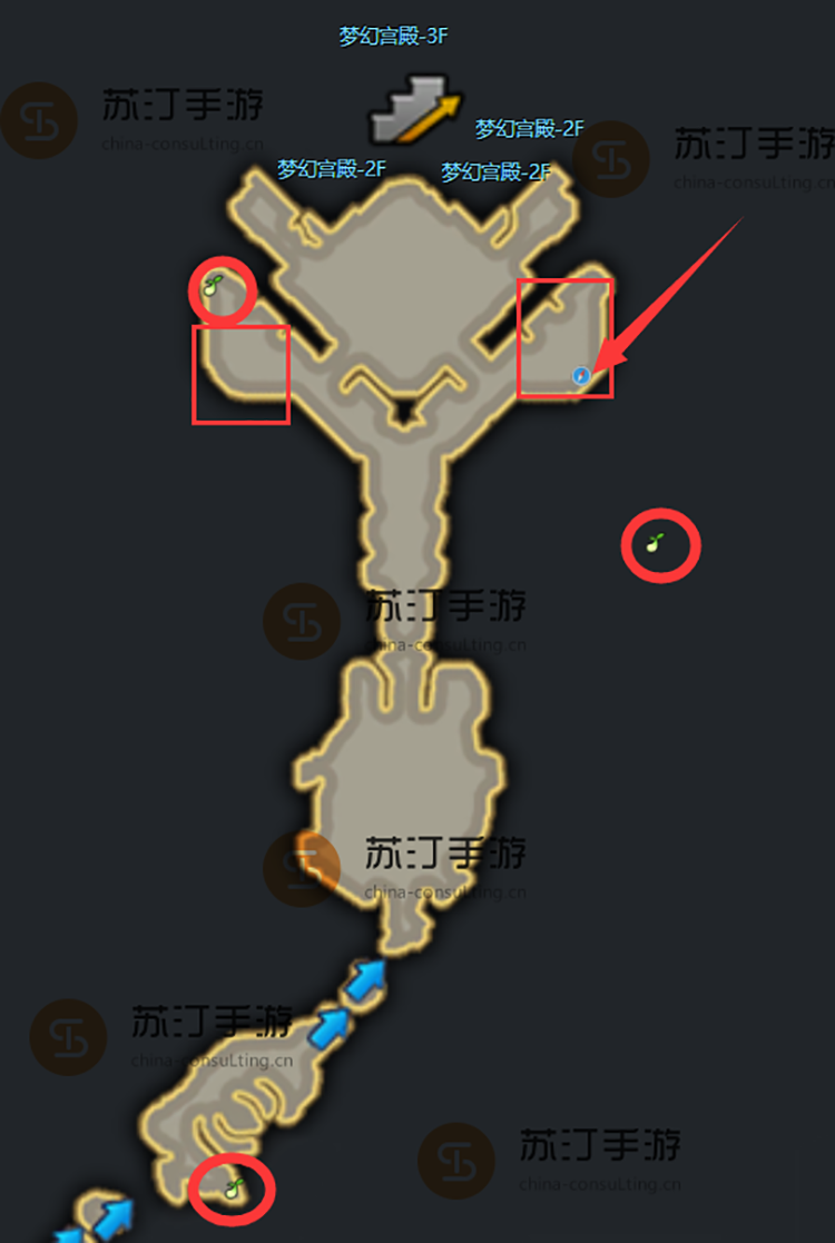 左边红色箭头所指的隐藏入口需要“与这里的镜子互动,传送到左边的莫科科”。右上角的隐藏入口需要玩家“击败隐藏BOSS‘梦想军团主教’才能获得”。