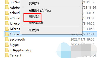 4.返回appdata文件夹后,进入本地,这里还有origin文件夹,删除其文件。