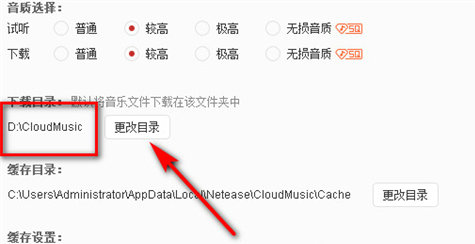4、这里我们可以看到网易云音乐下载的默认歌曲文件夹路径,用户也可以修改。