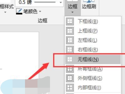 5、最后选中所有表格,点击设计中的边框,选择“无边框”,去掉边框,排列整齐。