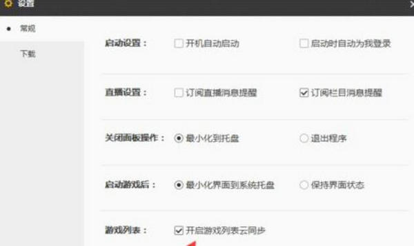 4、然后在右侧“游戏列表”中找到“开启游戏列表云同步”,勾选小方框。