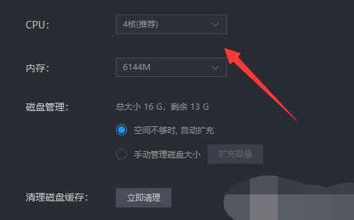 6、然后根据上图位置的cpu核数设置雷电模拟器的cpu核数。