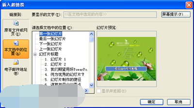 返回页面后,矩形仍应处于选中状态。如果您不小心取消选择了该矩形,也没关系。单击任务窗格下拉菜单中的“对象层”即可查看幻灯片中的对象层。在所有对象中,“矩形2010”(名称是随机生成的,也可能称为“矩形2004”或类似名称)是我们刚刚插入的矩形。单击鼠标选择矩形。选择后,从“插入”菜单中选择“超链接”,在“插入超链接”设置面板中选择“本文档中的位置”“第一张幻灯片”(图2),然后单击“确定”按钮。