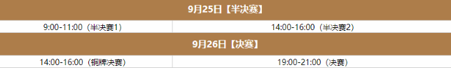 9月25日-9月26日(半决赛、决赛):
