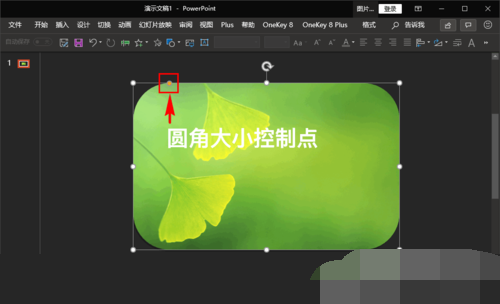 选择带有圆角的图片后,图片周围会出现一个控制变形工具。通过拖动左上角不同颜色的小点,可以改变图片圆角的大小。