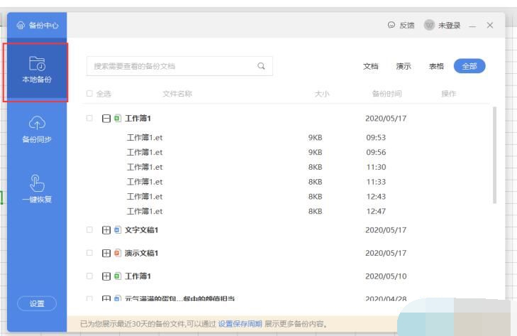 第二步:弹出【备份中心】页面,选择【本地备份】即可查看备份文件。