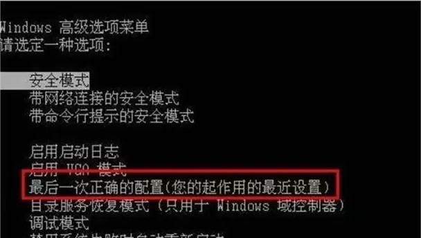 2、开机后无法成功进入系统。开机时按F8,选择“最近一次的正确配置”即可进入系统。