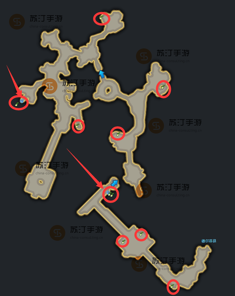 2.其他分散的Mokoko的位置已经在地图上标注得很清楚了。玩家在完成地下城挑战时可以轻松收集Mokoko种子。详细位置如下图所示: