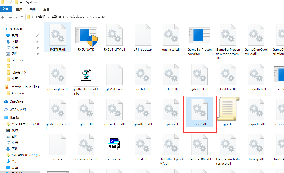 1.计算机的组策略编辑器gpedit.msc文件位于我们计算机的C:\Windows\System32文件夹中。您可以在此文件夹中找到gpedit.msc 组策略编辑器。