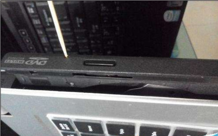 使用准备好的“牙签”或其他针状物体插入黑洞,强行打开光驱。具体方法是用“牙签”对着黑洞用力一戳,光驱就会自动弹出。