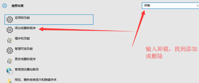在右上角的搜索设置中,输入“卸载”一词