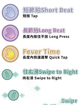 同时,玩家必须了解每个节拍的操作方法,防止失败而导致失分和错过。具体节拍操作方法如上图所示。