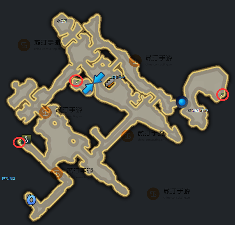1、一个是左边钓鱼点附近的Mokoko。另外两个地方也已经在地图上标注得很清楚了。具体位置如下图所示: