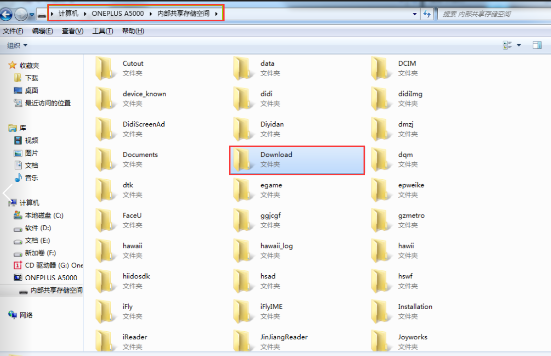7、进入手机文件目录,找到下载文件所在目录,双击打开。